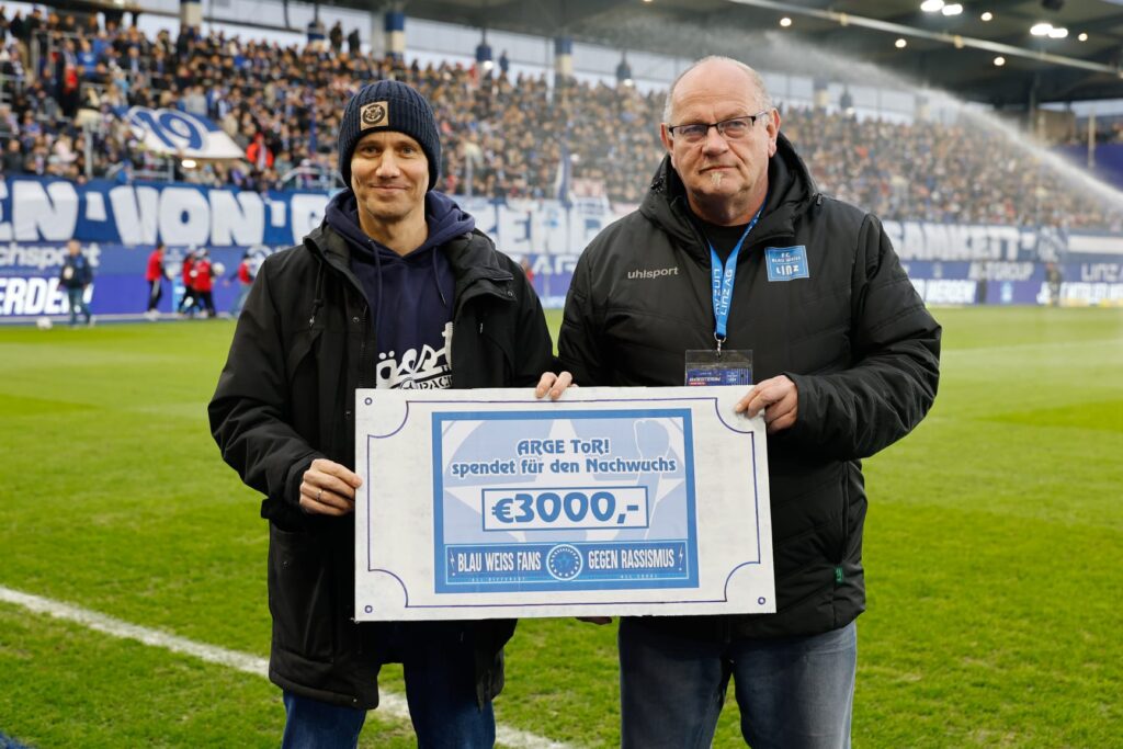 Die Arbeitsgemeinschaft Tribüne ohne Rassismus hat im Herbst zum 19. Mal mit der Aktion „Rent a Werbebande“ Spenden für den Nachwuchs gesammelt. Ihre Werbebande mit der Aufschrift „Blau-Weiß Fans gegen Rassismus“, die auf der Osttribüne zu sehen ist, setzen sie ein Zeichen gegen Diskriminierung beim FC Blau-Weiß Linz. Über 600 Personen haben sich heuer daran beteiligt. Dafür gilt es DANKE zu sagen.